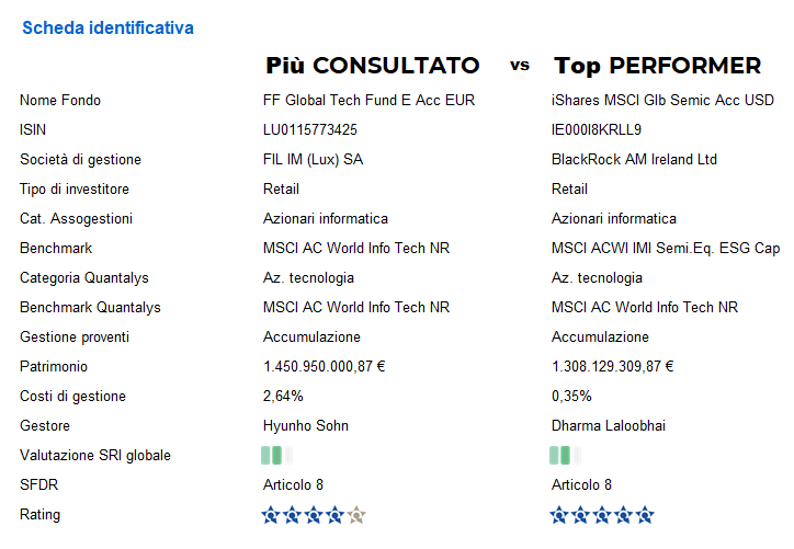 Di seguito è possibile visualizzare il confronto tra le caratteristiche di questi fondi.