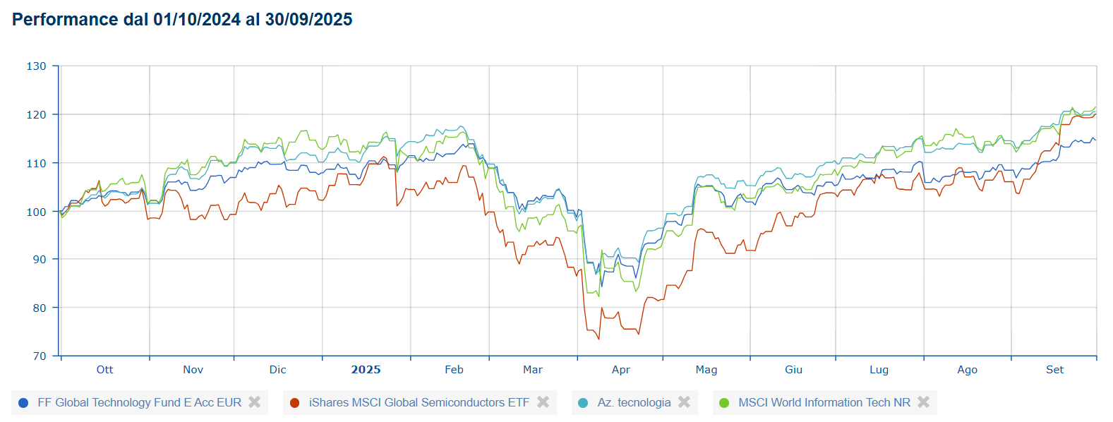 * La metodologia utilizzata per l'elaborazione dei dati è interna a Quantalys. I calcoli sono aggiornati al 30/09/2025. I calcoli sono effettuati da Quantalys e sono basati sui dati inviati giornalmente dalle società di gestione. Eventuali errori o omissioni sono di esclusiva responsabilità di Quantalys. Nonostante la massima cura prestata nella raccolta, nella verifica e nell’elaborazione dei dati provenienti da fonti ritenute affidabili, Quantalys non garantisce che i dati ricevuti siano accurati. Tutti i calcoli sono effettuati in euro.