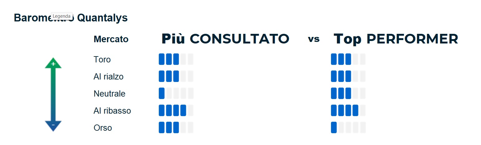 © 2025 Quantalys. Tutti i diritti riservati. Le informazioni fornite sono di proprietà di Quantalys Italia Harvest Group; possono non essere esaustive e non costituiscono raccomandazione o sollecitazione all’investimento. Quantalys Italia Harvest Group non si assume alcuna responsabilità per le eventuali conseguenze derivanti da decisioni assunte o iniziative intraprese sulla base delle informazioni riportate nel presente documento. Tutti i dati sono aggiornati alla data indicata e attribuiti a Quantalys Italia Harvest Group, salvo diversa indicazione.