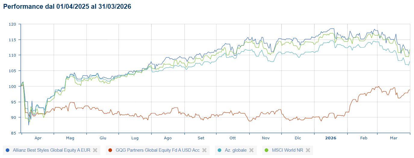 * La metodologia utilizzata per l'elaborazione dei dati è interna a Quantalys. I calcoli sono aggiornati al 31/03/2026. I calcoli sono effettuati da Quantalys e sono basati sui dati inviati giornalmente dalle società di gestione. Eventuali errori o omissioni sono di esclusiva responsabilità di Quantalys. Nonostante la massima cura prestata nella raccolta, nella verifica e nell’elaborazione dei dati provenienti da fonti ritenute affidabili, Quantalys non garantisce che i dati ricevuti siano accurati. Tutti i calcoli sono effettuati in euro.